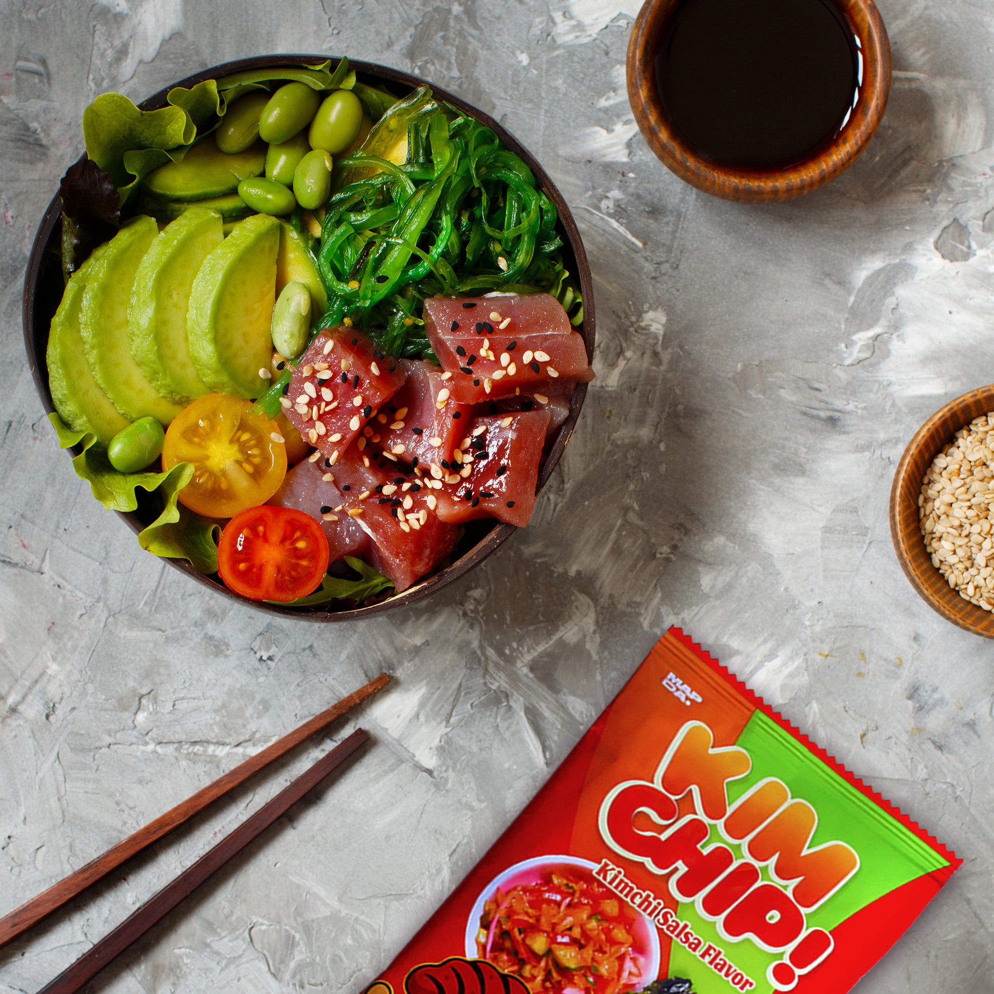 Meet your KIMCHIP! a bold seaweed snack straight from Korea. Inspired by Korea’s love for fiery flavors, this addictive kimchi salsa chip is savory, spicy, and seriously fun to munch. Guilt-free even at midnight – made with clean ingredients like organic seaweed, it's super light at just 15 calories per pack. A fun, healthy snack you can enjoy anytime. Plus a surprise collectible sticker in every bag!